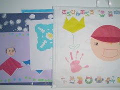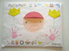 幼稚園で描いた作品を入れてある「さくひんぶくろ」